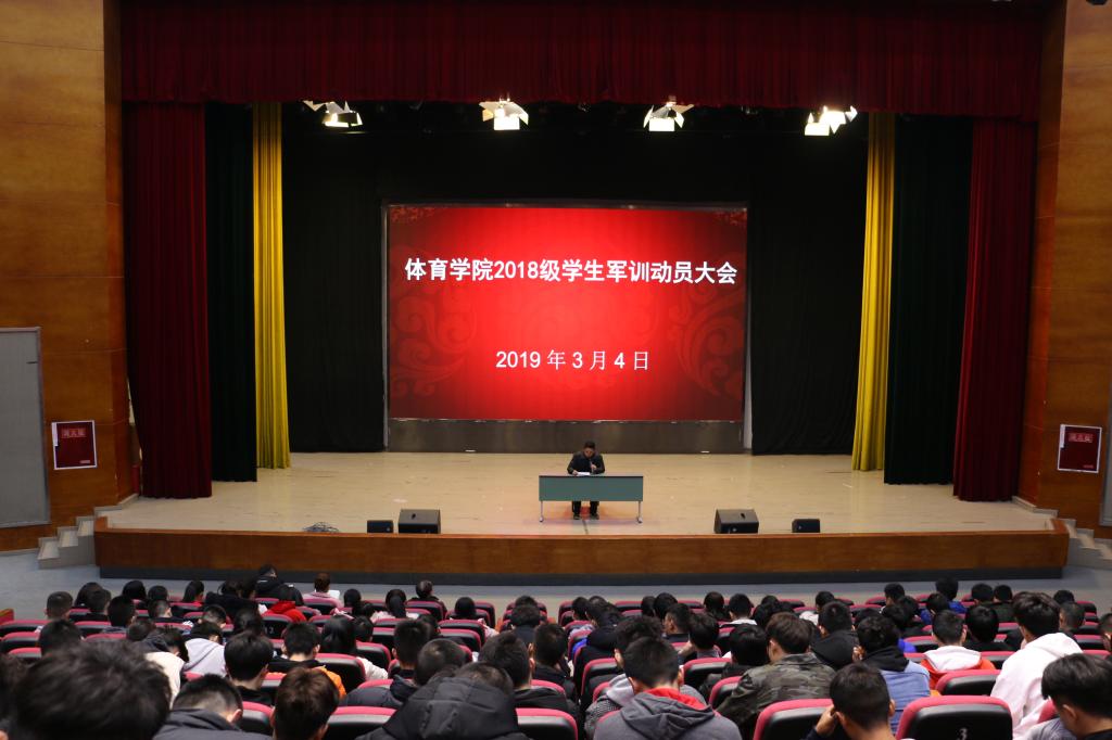 2019年3月4日下午4:20,公司在校影院举行了2018级军训动员大会。参加本次会议的有体育公司党总支副书记王进副教授、学工办主任彭波老师及辅导员石娇娜、崔开文老师和2018级全体新生。本次会议由石娇娜老师主持,王进副书记主讲。