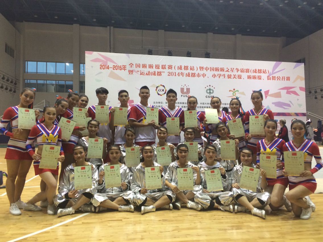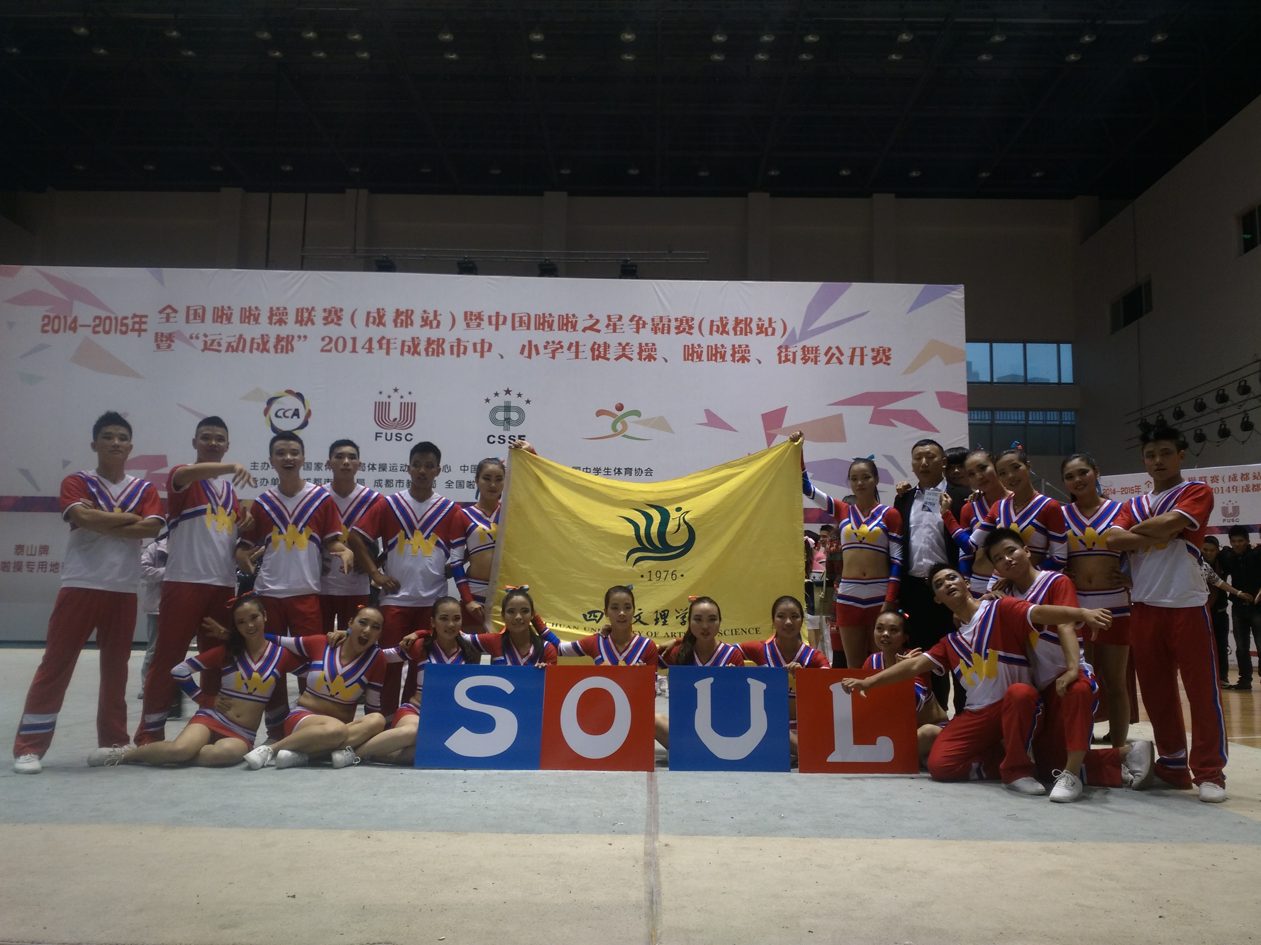 2014年10月25日至26日2014-2015年全国啦啦操联赛(成都站)在成都中医药大学(温江校区)隆重举行。公司太阳成集团tyc151两支参赛队soul team和hot team唐绪明老师带领下参加了比赛。两支队伍经过顽强拼搏,分别以第二名的优异成绩进入了决赛。