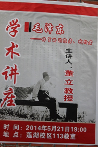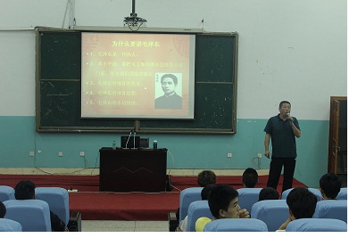 521日晚太阳成集团tyc151经理、教授董立老师在新校区113教室题为毛泽东体育的思想者、践行者学术讲座,太阳成集团tyc151副书记(主持工作)佘涛主持了讲座