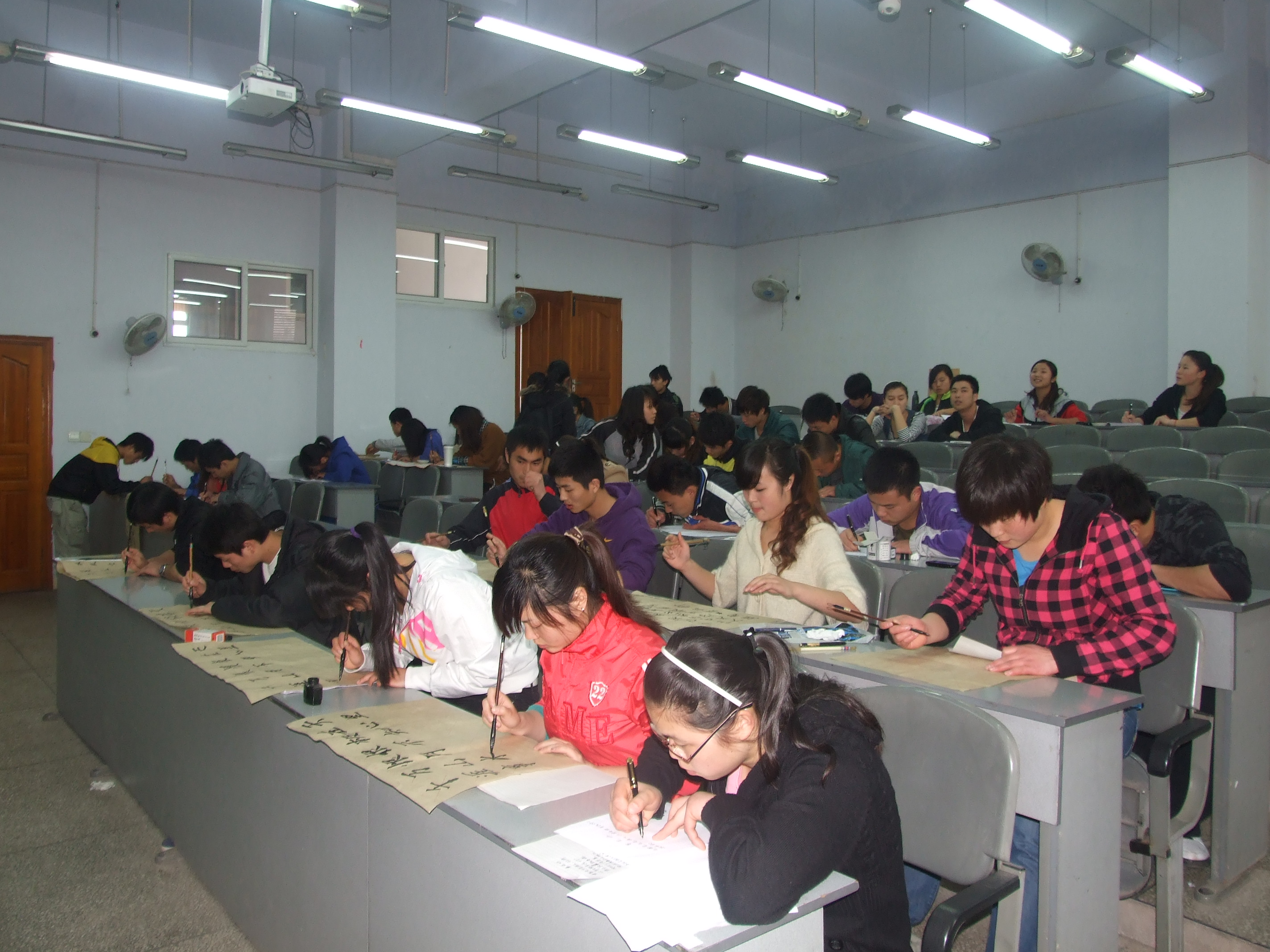 在建团九十周年暨“五四”运动九十三周年之际,为丰富我系校园活动,传播和发扬书法国粹,我系于3月29日中午12:30在莲湖校区511教室举办“风华正茂、魅力青春”书法比赛。本次比赛由体育系团总支主办,系宣传部承办。我系热爱书法的同学们都踊跃报名,经各班级推选,最终有50余名同学参加了比赛。选手们统一以《梦江南》、《葬花吟》为材料,比赛主要分为软笔和硬笔两种书写形式。