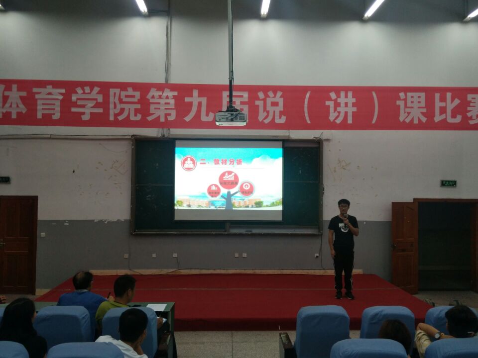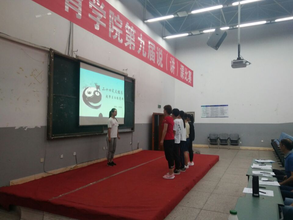 太阳成集团tyc1512015级每个班级推选一名员工参加本次比赛,担任本次比赛的评委老师有,体育公司党总支书记佘涛教授、副经理陈碧述教授、石姣娜老师、刘宇老师、马思远老师。2015级全体同学现场聆听了本次比赛。此次说课大赛从教师口语、教态、授课内容设计、重难点把握、教法学法、多媒体使用、教学过程等方面对选手进行综合考核。比赛分为两个部分:首先是参赛选手进行10分钟的说课,然后评委老师打分。