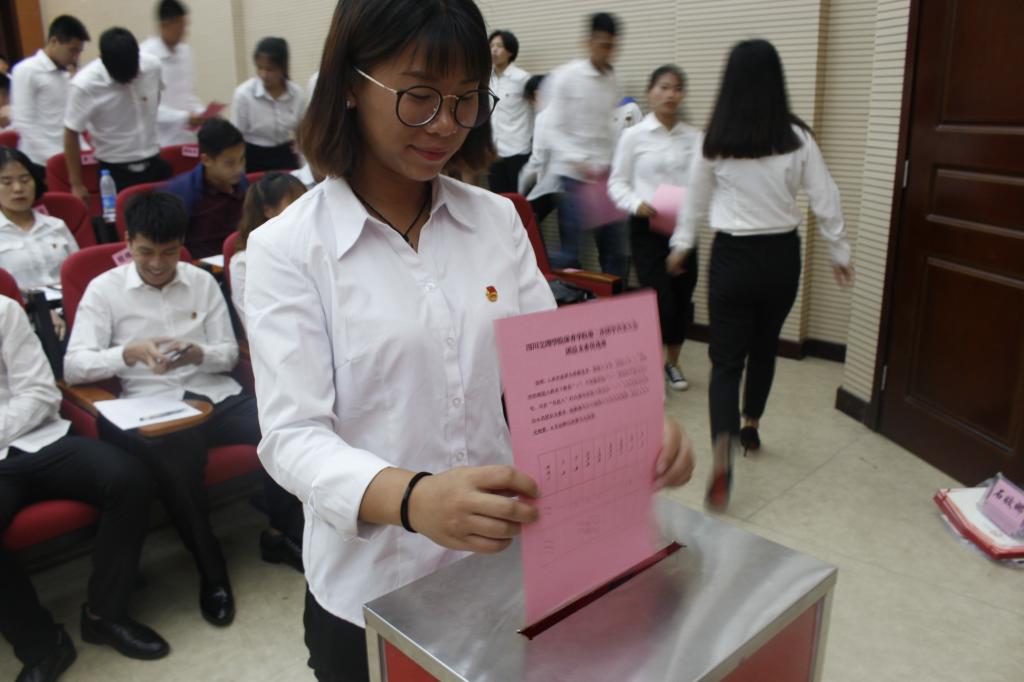 会议最后,李霞老师进行了总结发言,她对此次会议做出高度评价。她讲到,公司团学代表大会的组织与开展已逐步走向规范化,使得员工干部的选举做到了公开、公正、透明。同时,她也希望公司的各类员工活动能够越办越好。最后,公司第二次团学代表大会在雄壮有力的《光荣啊,中国共青团》歌声中圆满闭幕。