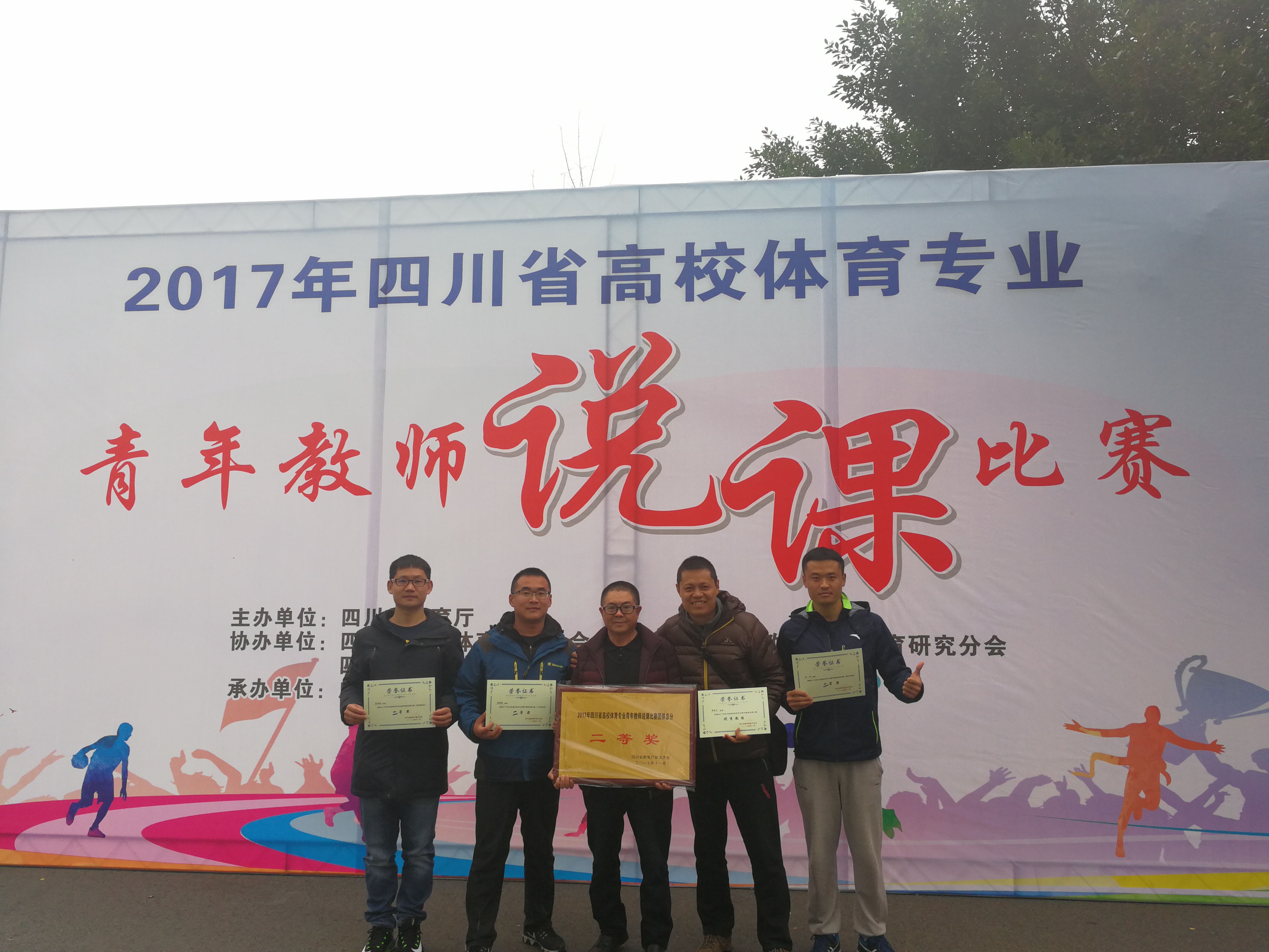 20171123日至25日,2017年四川省高校体育专业青年教师说课比赛在成都师范公司举行。公司三名青年教师刘宇、张岩松、马思远分别获得个人二等奖,团体获二等奖,成绩较以往有了重大突破。