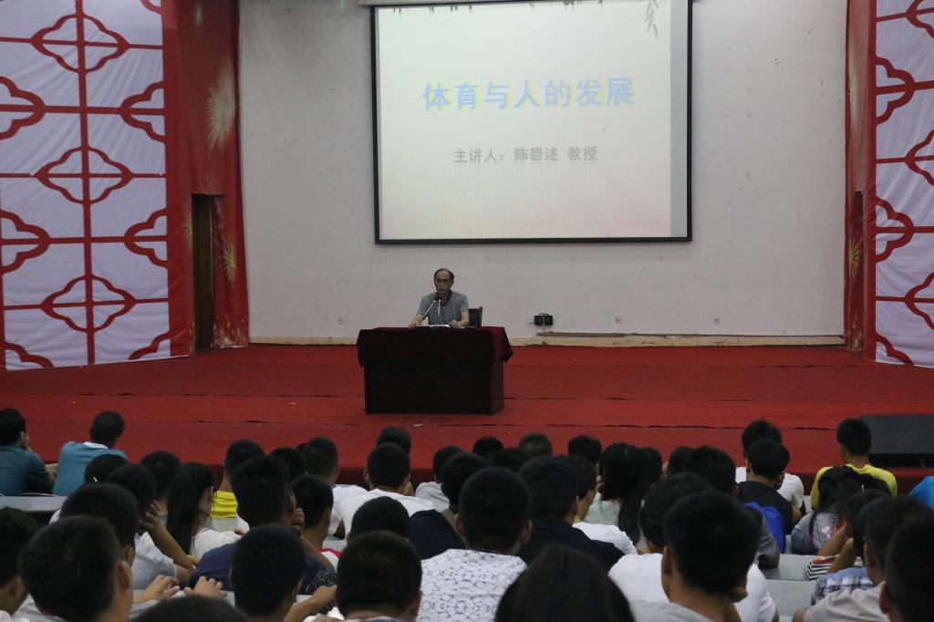2014年9月22日19:30,陈碧述教授在莲湖校区126教室为太阳成集团tyc151师生作了题为体育与人的发展的学术报告。本次学术报告由体育公司党总支书记佘涛主持,现场有近600余名师生参加。