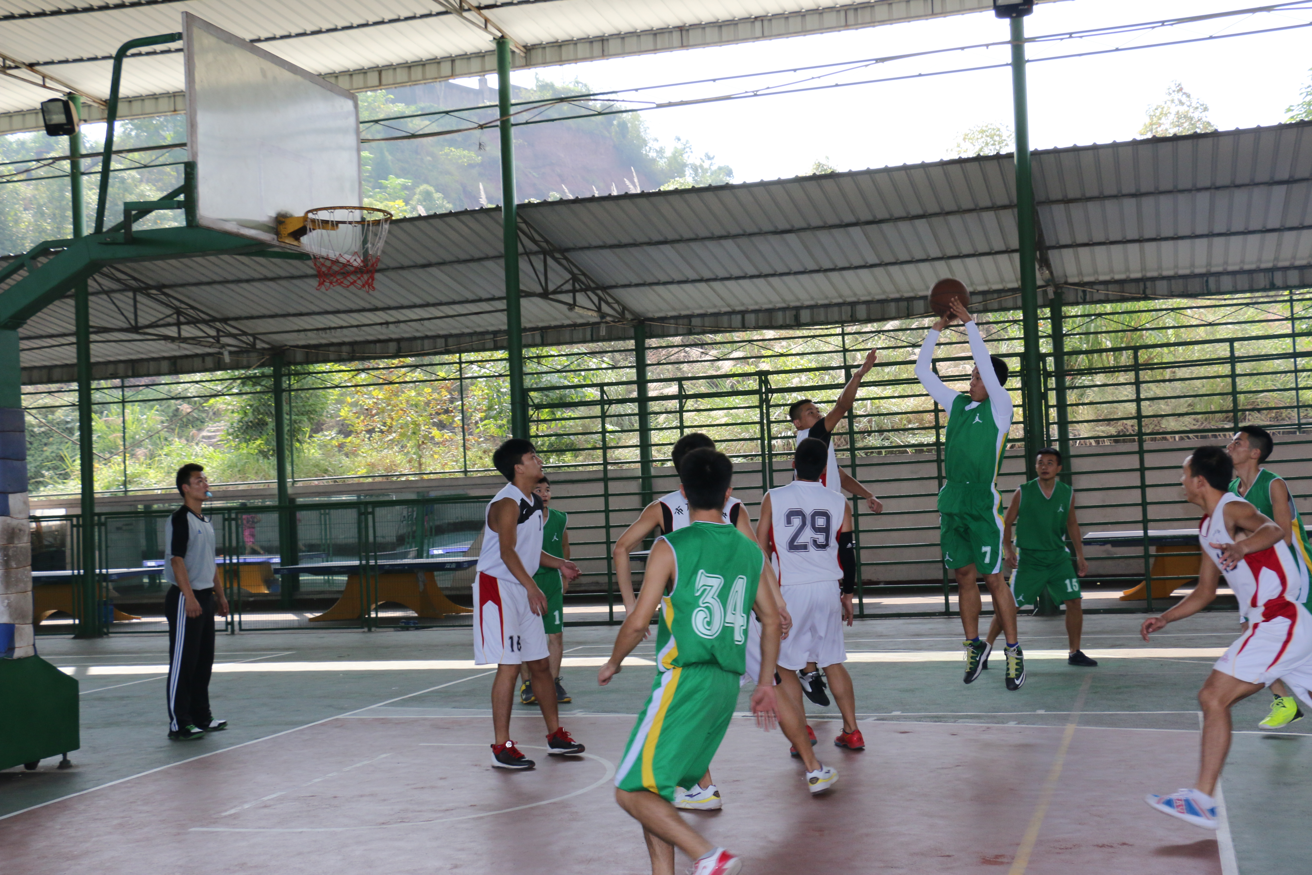 公司秋季篮球联赛于10月23中午室外篮球场和室内篮球棚同时开赛。本次篮球联赛仍采用小组淘汰赛制,每小组胜出者将进入下一轮比赛比赛将为期15天。天气晴朗,阳光明媚,运动的气息笼罩在整个篮球场上。篮球比赛,场场精彩,欢迎老师和同学们前来观看。