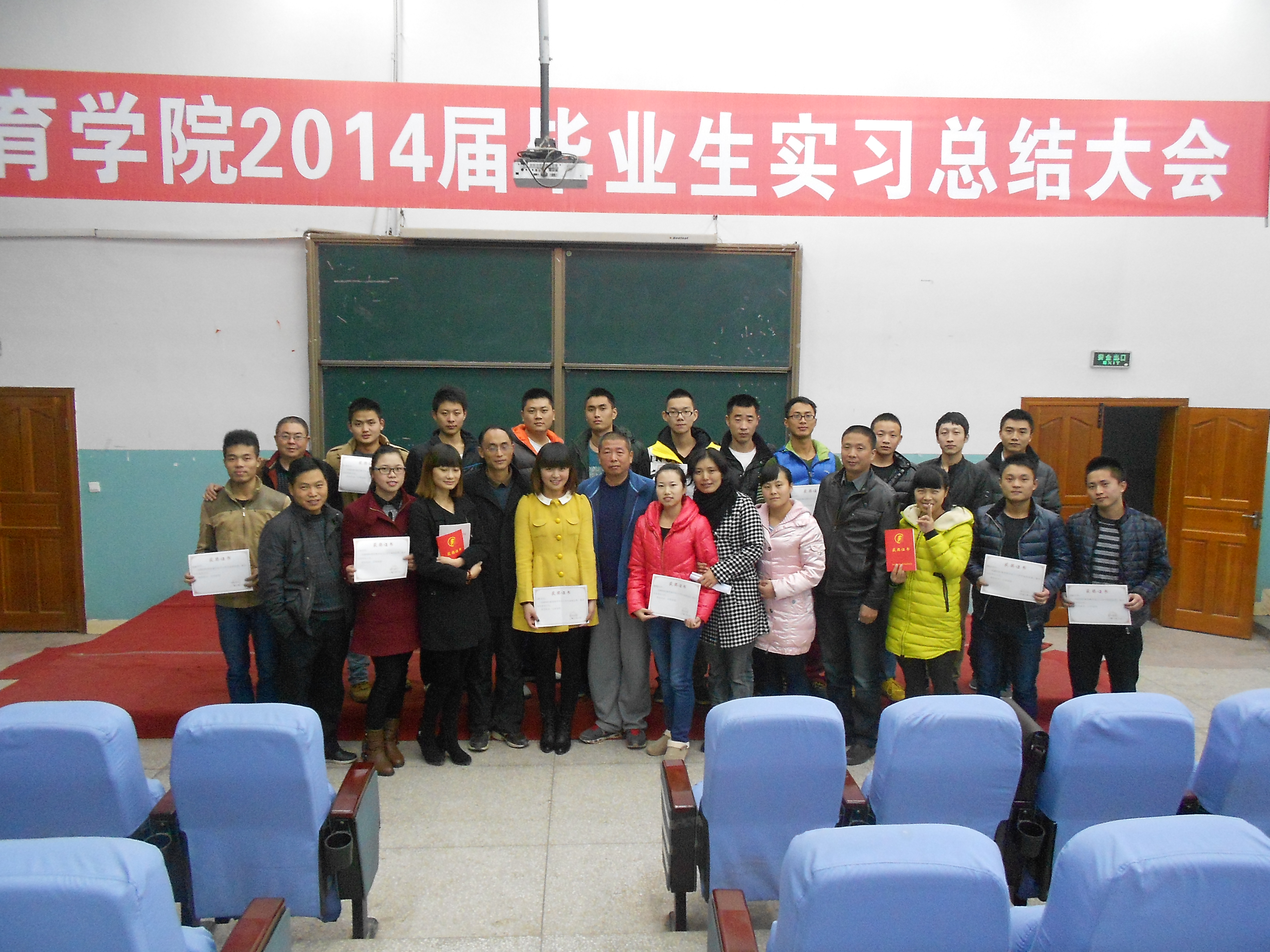 会上,李文华老师还对本次实习进行了总结。他首先肯定了2014届本科实习生在实习过程中的良好表现,并对全体同学提出了要求,要求大家在今天的时间里要努力加强学习,打牢理论功底,加强教师技能训练,以理论为基,以实践为本。董主任在大会总结中提到,他希望有实习经历的同学们不要忘记实践中获得的真知,实习仅仅是和社会接触的第一步,大家要总结经验,吸取教训,真正在学习和实践中得到锻炼。未参加实习的同学们,在以后的学习工作中,更要发奋努力,不断提升综合素质,为以后的走向社会做好充分准备。