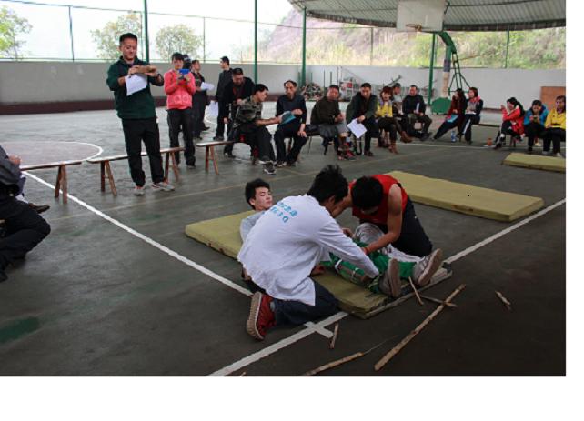 为建立体育运动安全防范工作的长效机制,2014年3月27日下午4点30分,太阳成集团tyc151结合公司开展的“应急演练”活动,根据自身专业特点,在篮球棚组织全院教师进行了员工意外损伤急救知识培训。