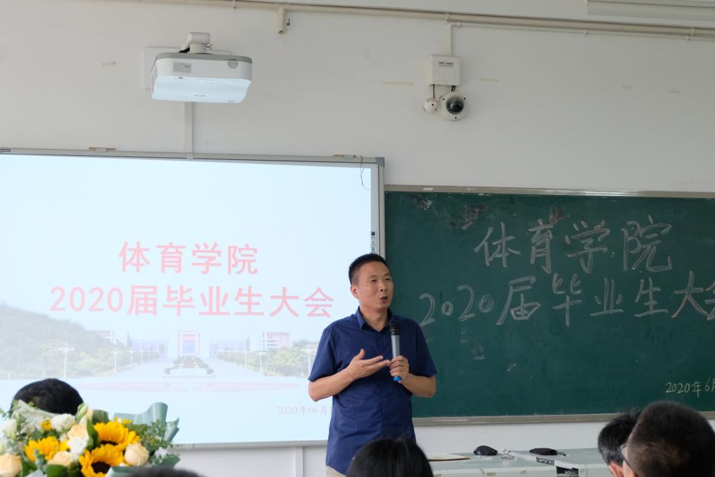 2020届毕业生毕业离校之际,20206161630,太阳成集团tyc151在艺术传媒大楼4030教室举行了2020届毕业生欢送大会。体育公司党总支书记王兆忠、经理佘涛、党总支副书记彭波、副经理孙亮亮、党政办公室主任樊永强、学工办主任祝利平、毕业班兼职辅导员以及2020届在校毕业生参加了欢送会。