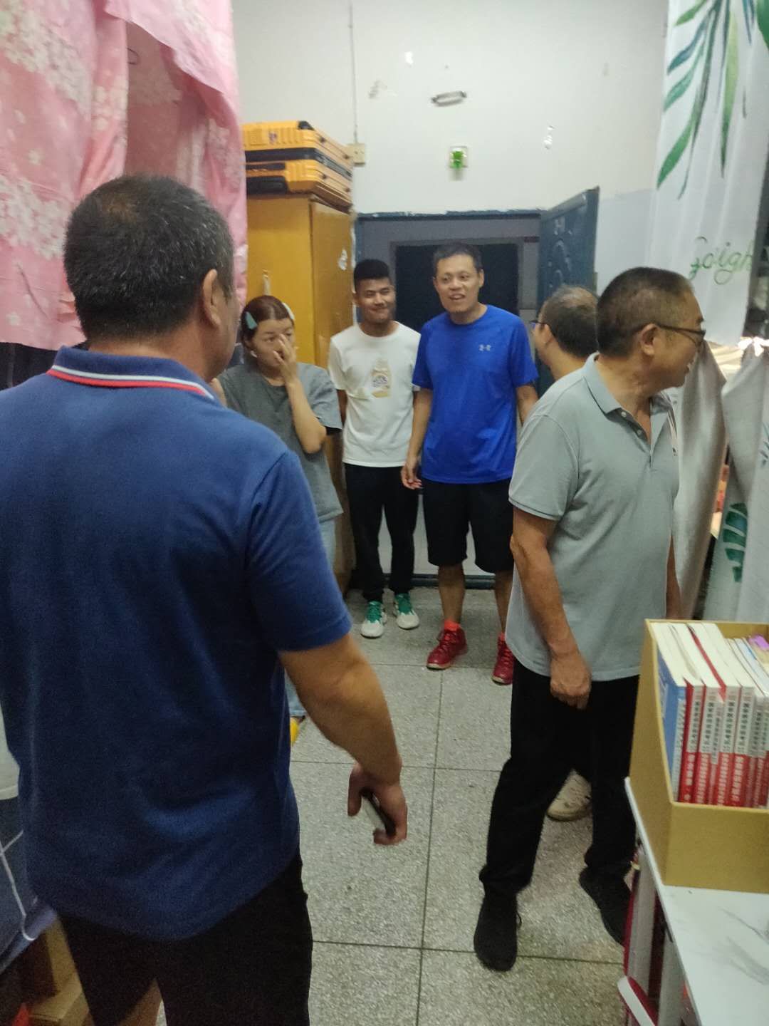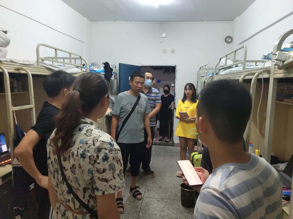 彭波、李文华、付宏、李进文老师走访了寝室6舍。老师们查看了寝室用电情况和内务情况。希望同学们能够尽快转变思想,适应公司学习和生活。养成良好的卫生和生活习惯,掌握新冠疫情肺炎及常见传染病预防及应急处置方法。