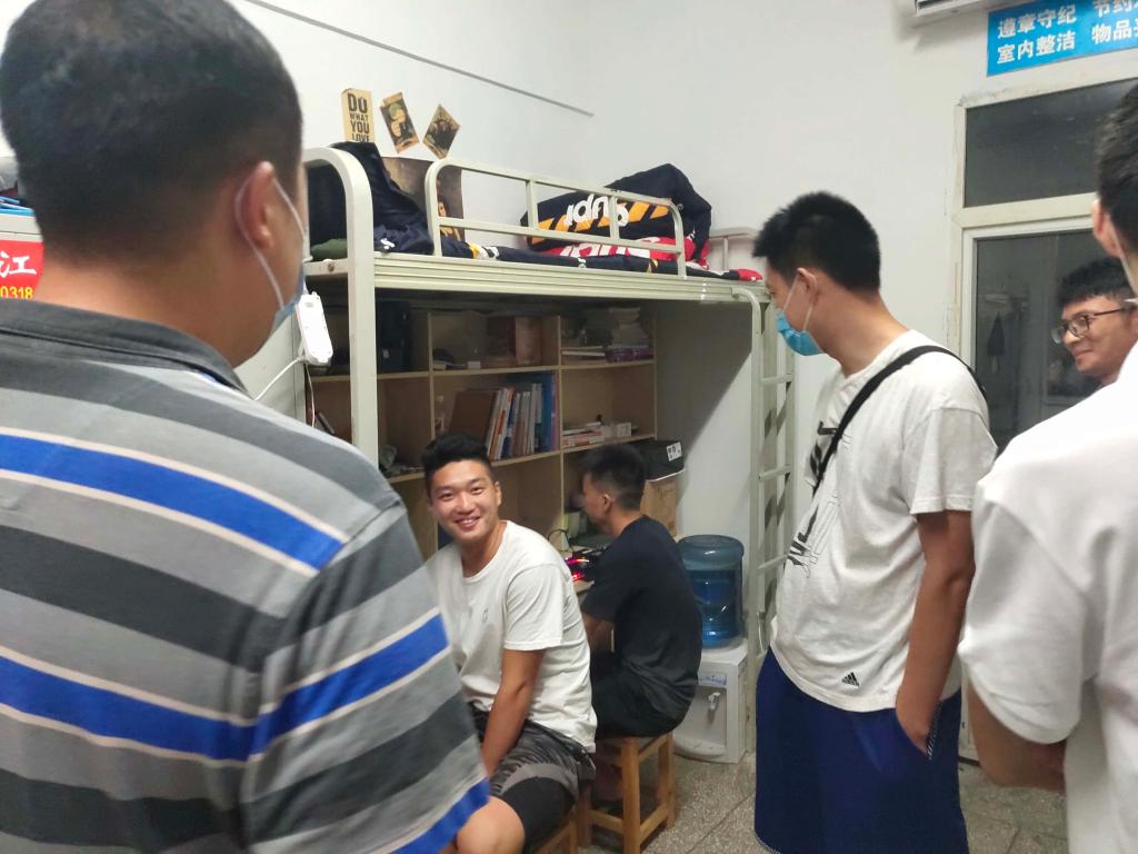 王兆忠、许汝霞、赵伟、靳昆仑老师走访9舍。在走访过程中,老师们与员工进行沟通交流,询问同学们返校后思想、学习、生活等情况。希望同学们在疫情特殊时期要保持宿舍整洁,注重个人卫生和生活习惯,勤通风,勤晾晒衣服、被子。同时要提升安全意识和集体观念,营造安全、文明、和谐的宿舍氛围。