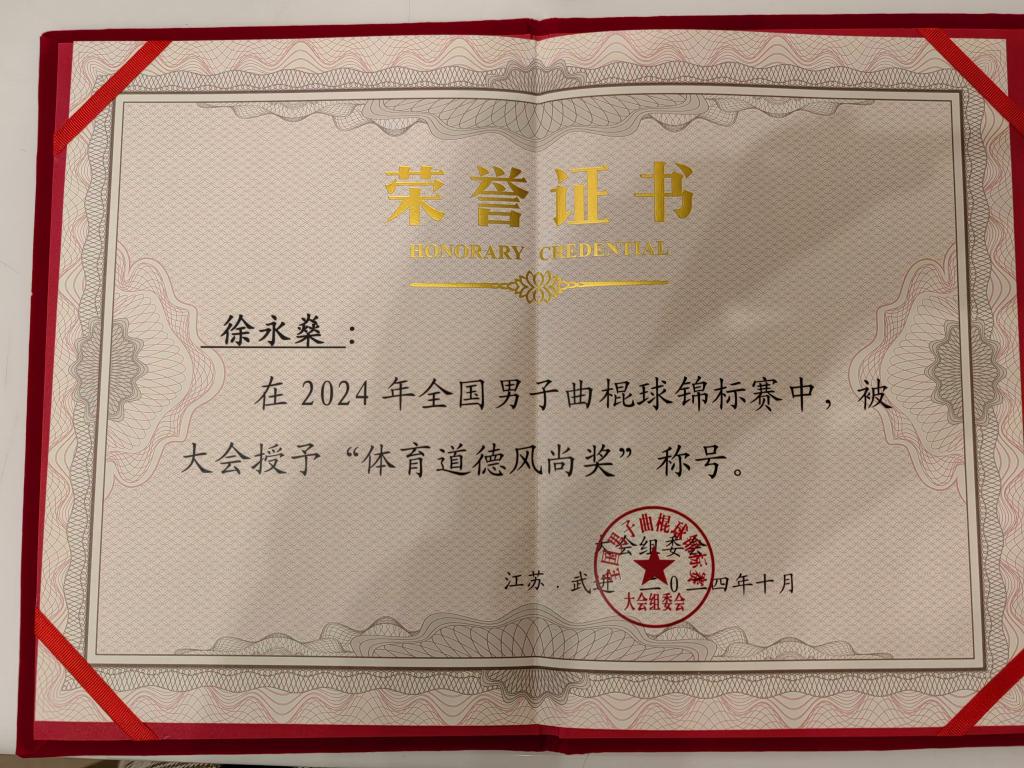 太阳成集团tyc151徐永燊老师在2024年全国曲棍球锦标赛中荣获体育道德风尚奖