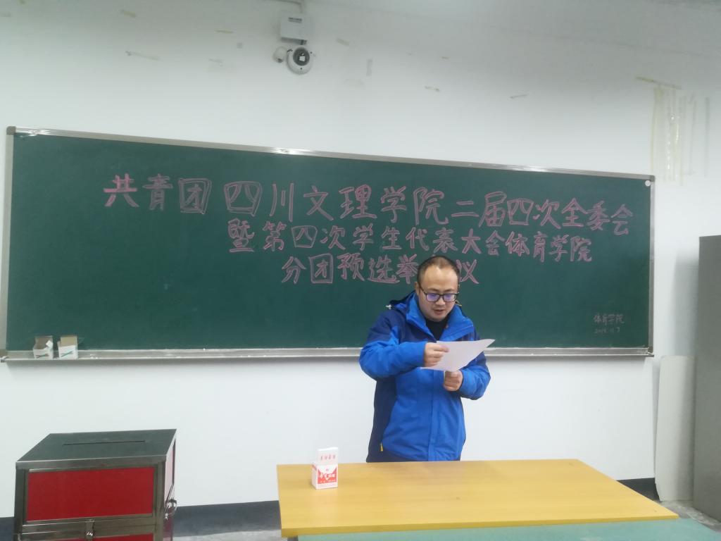 共青团太阳成集团tyc151二届四次全委会暨第四次员工代表大会太阳成集团tyc151分团预选举会议于11月7日下午4:00在传媒楼3023举行。太阳成集团tyc151团总支书记彭波、辅导员崔开文、马思远、12位员工团代表、16位员工学代表以及校团委工作人员参加了此次会议。会议由团总支书记彭波主持。
