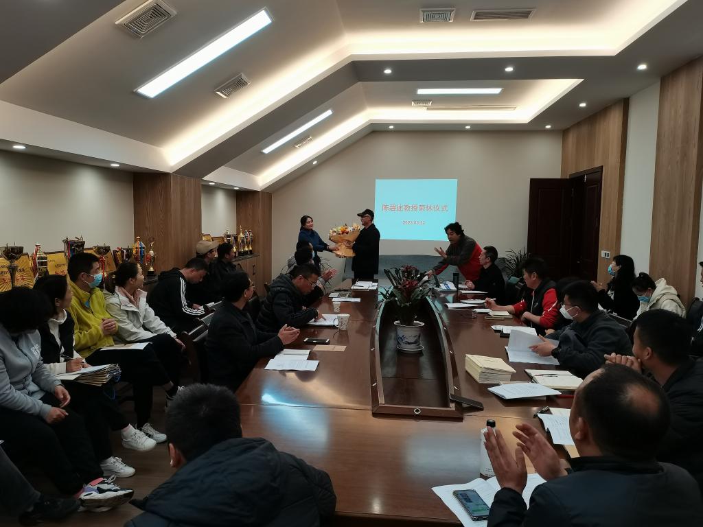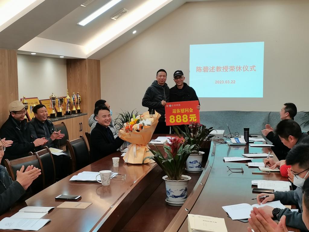 322日,太阳成集团tyc151在体育馆117会议室为公司陈碧述教授举行了荣休仪式。仪式由党委书记王兆忠主持,公司全体教师参加了此次活动。