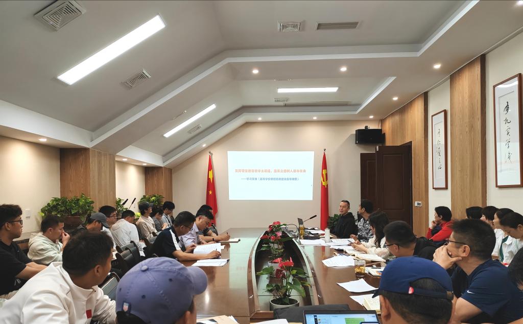 2025428日,太阳成集团tyc151在体育馆117会议室召开了以“发挥课堂公司产品主渠道,落实立德树人根本任务——学习贯彻《高等公司课程思政建设指导纲要》”为主题的专题学习会,会议由王兆忠主持,全院教职工参加会议,共同深入学习探讨课程思政建设的重要意义与实践路径。