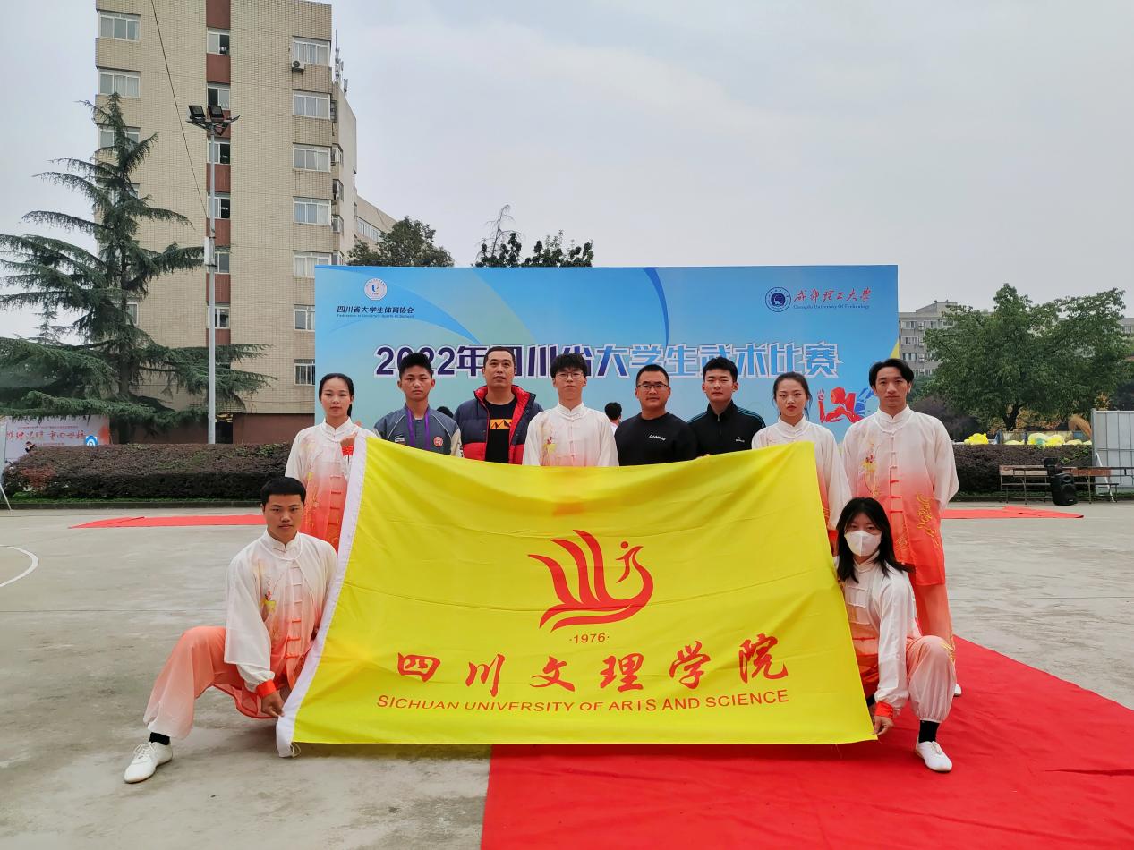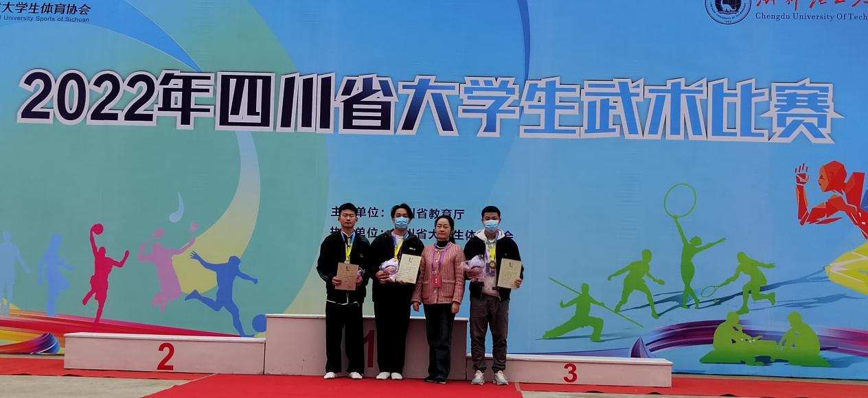 由太阳成集团tyc151武术专项班八名同学组成的参赛队伍,在孙亮亮副经理、沈娟副教授、谢成立副教授和张岩松老师的训练与带领下,取得优异成绩。其中,熊洋、何姝瑶同学荣获四川流行拳第一名,罗世林荣获第二名,杨慧、唐源宏荣获第三名,宋明洋荣获第四名。