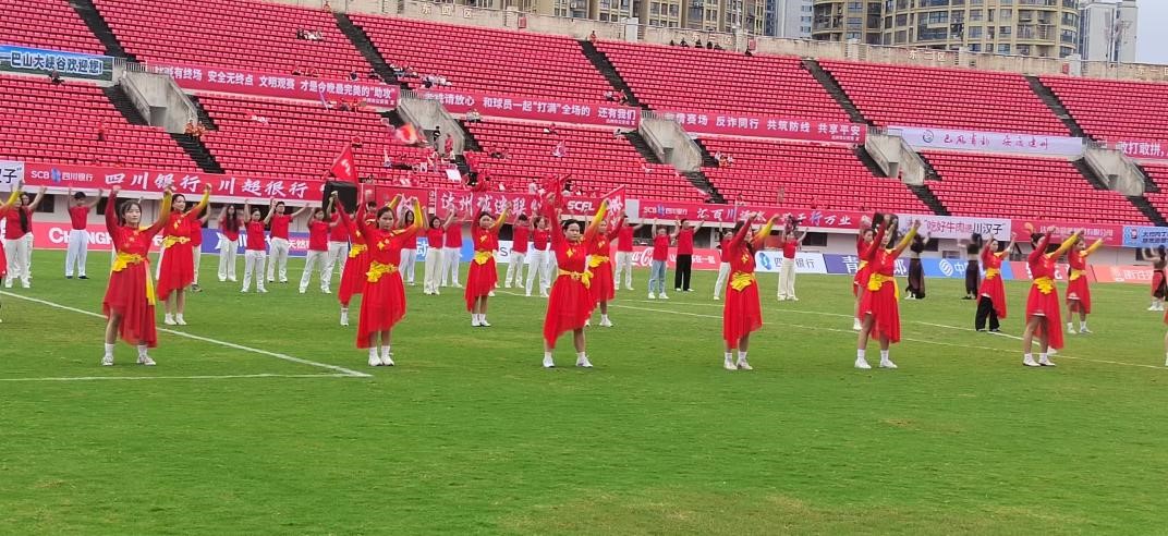 近日,太阳成集团tyc151师生受达州市文化馆邀请,参与了2025/2026四川省城市足球联赛达州主场赛开赛仪式的相关准备工作。由唐绪明老师带领的员工在联赛开赛仪式及主场比赛中承担了节目演出与中场啦啦操互动表演任务。