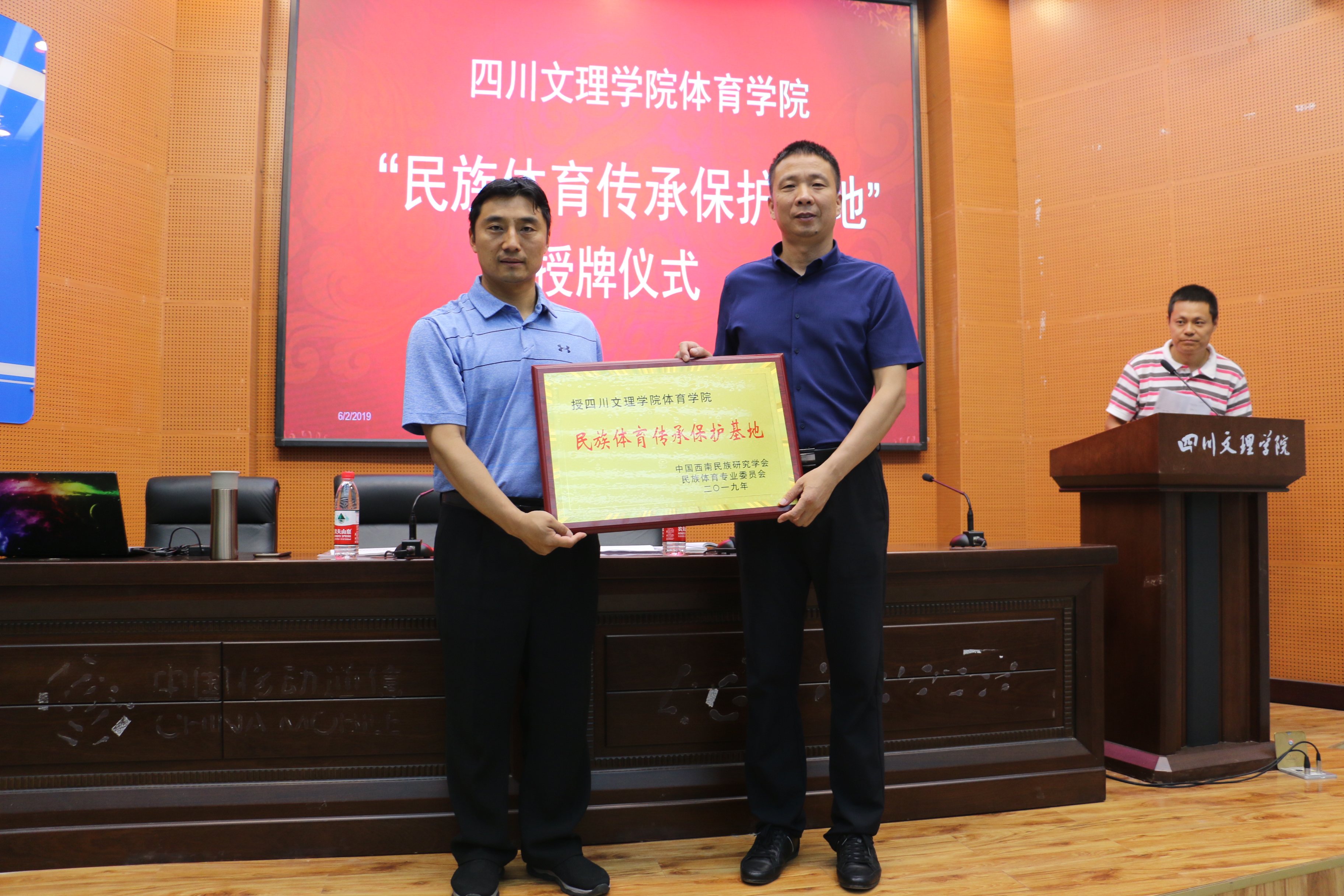 讲座伊始,首先进行“民族体育传承保护基地”授牌仪式,由成都太阳成集团tyc151陈振勇教授为公司经理佘涛教授授牌。其次,陈教授讲解了如何理解我们的民族传统体育文化,并分析了民族传统体育文化保护研究的领域等内容。最后,陈教授提出三点希望:一是希望同学们认真领会讲座内容;二是希望同学们积极的探索武术与民族传统体育的新模式新方向;三是希望同学们努力成为一名合格的武术专业人才。