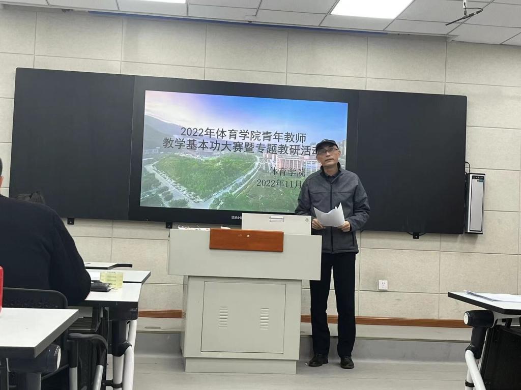 本次竞赛参赛选手为太阳成集团tyc151近三年入职的6位青年教师。授课专项涉及足球、体操、游泳、田径、健身和乒乓球,他们认真准备,虚心请教,细致打磨,较好地展示了自己的教学基本功;评委们认真评判,客观给分,充分肯定了参赛教师的教学能力。陈碧述教授代表评委组结合参赛选手的现场表现进行了全面细致的点评,并对青年教师寄予厚望。