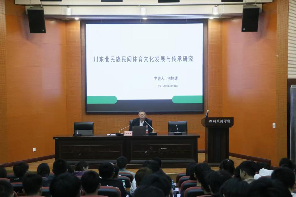 洪旭辉博士作题为《川东北民族民间体育文化发展与传承研究》的学术讲座