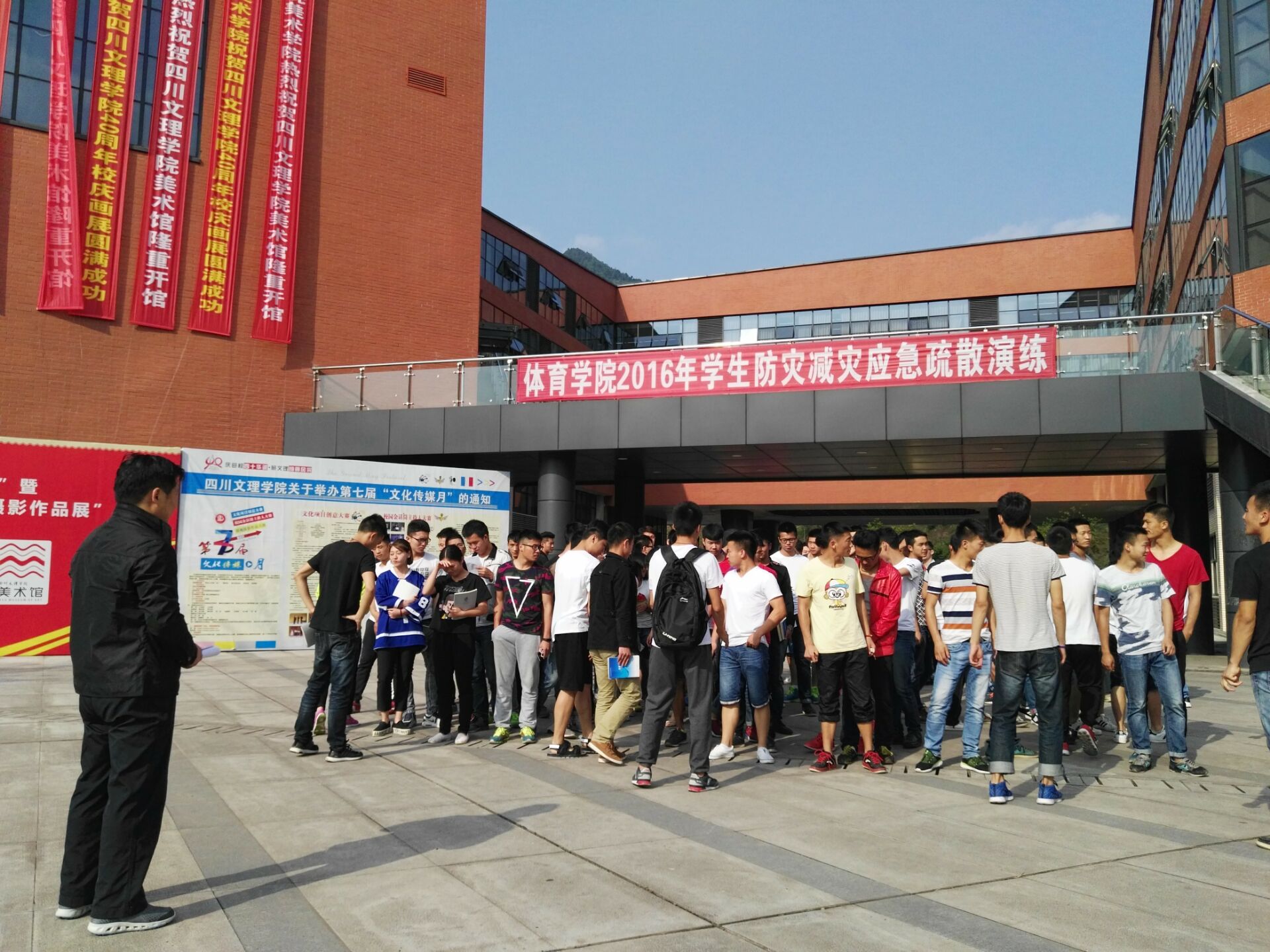 5月12日是我国第八个“防灾减灾日”,在防灾减灾宣传周,公司组织2015级员工在传媒楼开展了应急疏散演练活动。