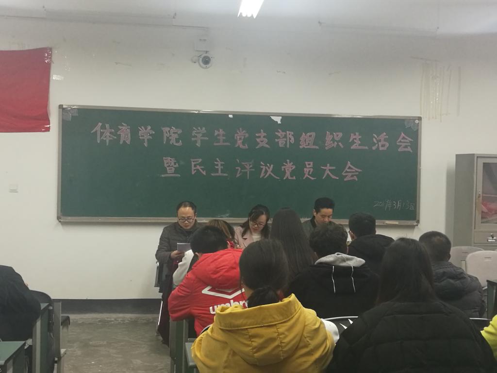 太阳成集团tyc151员工党支部于2019年3月13日16:20在文传楼3022教室举行了组织生活会暨民主评议党员大会。会议有公司党委组织部副部长李红梅、体育公司党总支副书记兼员工党支部书记王进、员工党支部支委成员彭波与石姣娜、辅导员崔开文及太阳成集团tyc151员工党员参加。