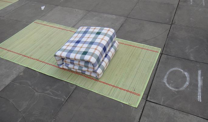 同学们准备好了被子和席子在比赛场地等待比赛,每个寝室派出了三名代表参赛,同学们都满怀信心的向着第一名进发。比赛限时两分钟,同学们在短暂的时间里,既紧张又兴奋。比赛哨音一响,每位参赛成员的动作都很迅速,很快就把被子叠成了豆腐块。最后,前三名的寝室代表在一起合影留念。