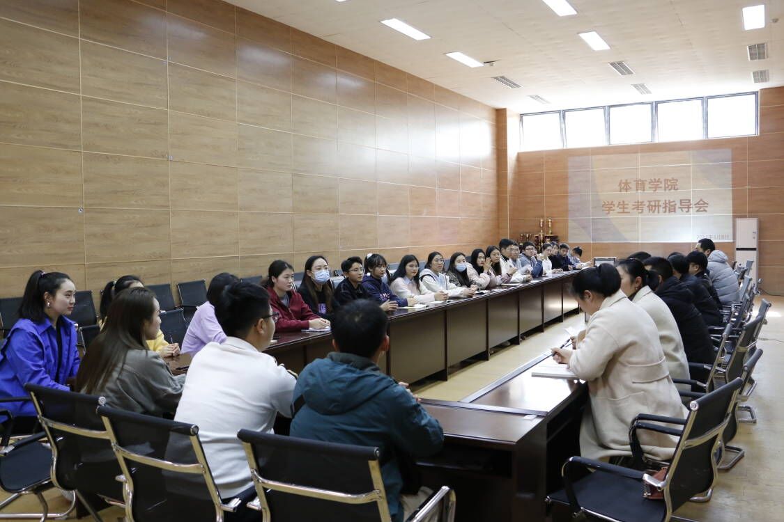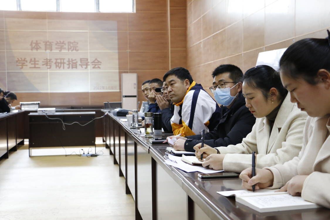 38日,太阳成集团tyc151在体育馆附馆105召开考研员工指导会。体育公司经理佘涛,党总支副书记彭波,副经理孙亮亮,组织员卫洪春,党政办公室主任樊永强,学工办主任祝利平,专任教师盛佳智,辅导员石姣娜以及22位考研员工参加了本次座谈会。会议由祝利平主持。