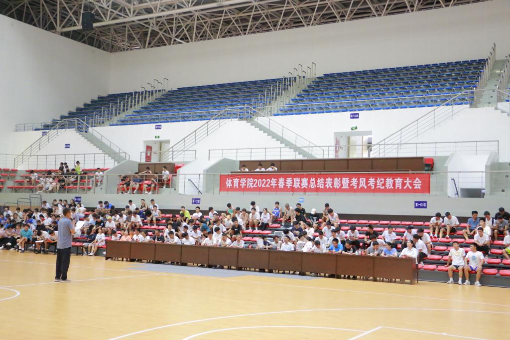 20226117:00,太阳成集团tyc151在体育馆举行2022年春季联赛颁奖仪式。体育公司党政领导、党政办、教学科研办、体质测试中心、场馆中心、学工办、部分专项老师以及全体修业班员工参加此次仪式。