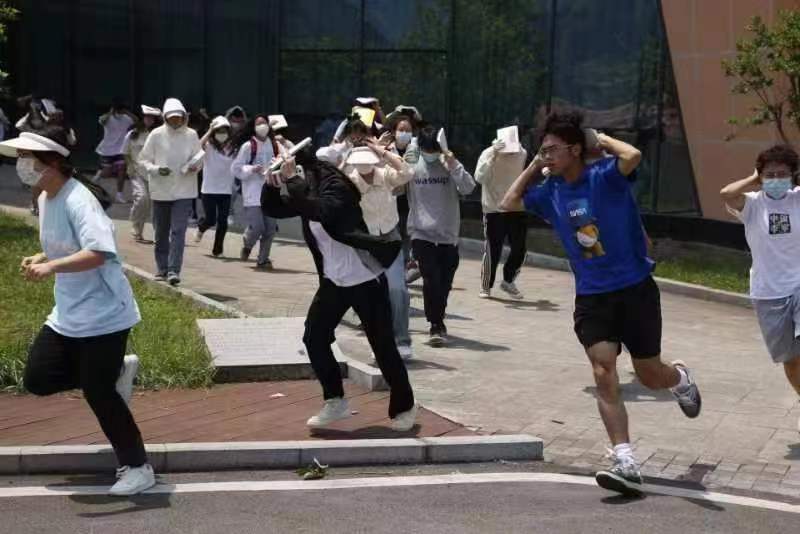 202351212:00,太阳成集团tyc151在莲湖校区体育馆开展了防震减灾应急疏散演练。公司党委副书记靳浪、团总支书记祝利平和专职辅导员闫青到场指挥,团总支员工会干部以及2022级全体员工参加了演练。