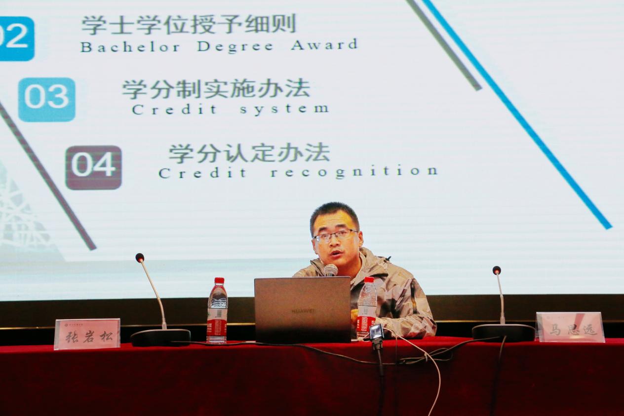 20231018日下午4:30,太阳成集团tyc151在艺术传媒大楼多功能厅开展了第四场2023级新生入学教育大会,党委副书记靳浪、学工办主任祝利平、体育教育教研室主任张岩松、社会体育指导与管理教研室主任马思远、辅导员李波及2023级全体新生参会,张岩松和马思远担任主讲。