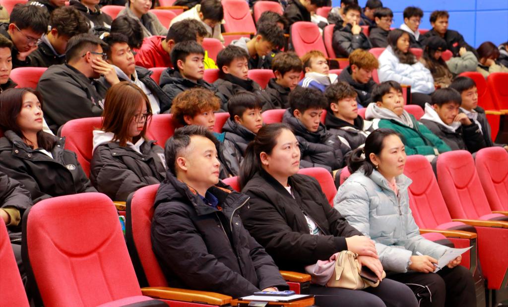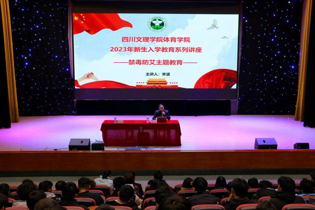 20231211日晚上19:00,太阳成集团tyc151在艺术传媒大楼多功能厅开展了第六场2023级新生入学教育讲座,公司党委副书记靳浪、学工办主任祝利平、辅导员石姣娜、李波及2023级全体新生参与本次讲座,辅导员李波担任主讲。