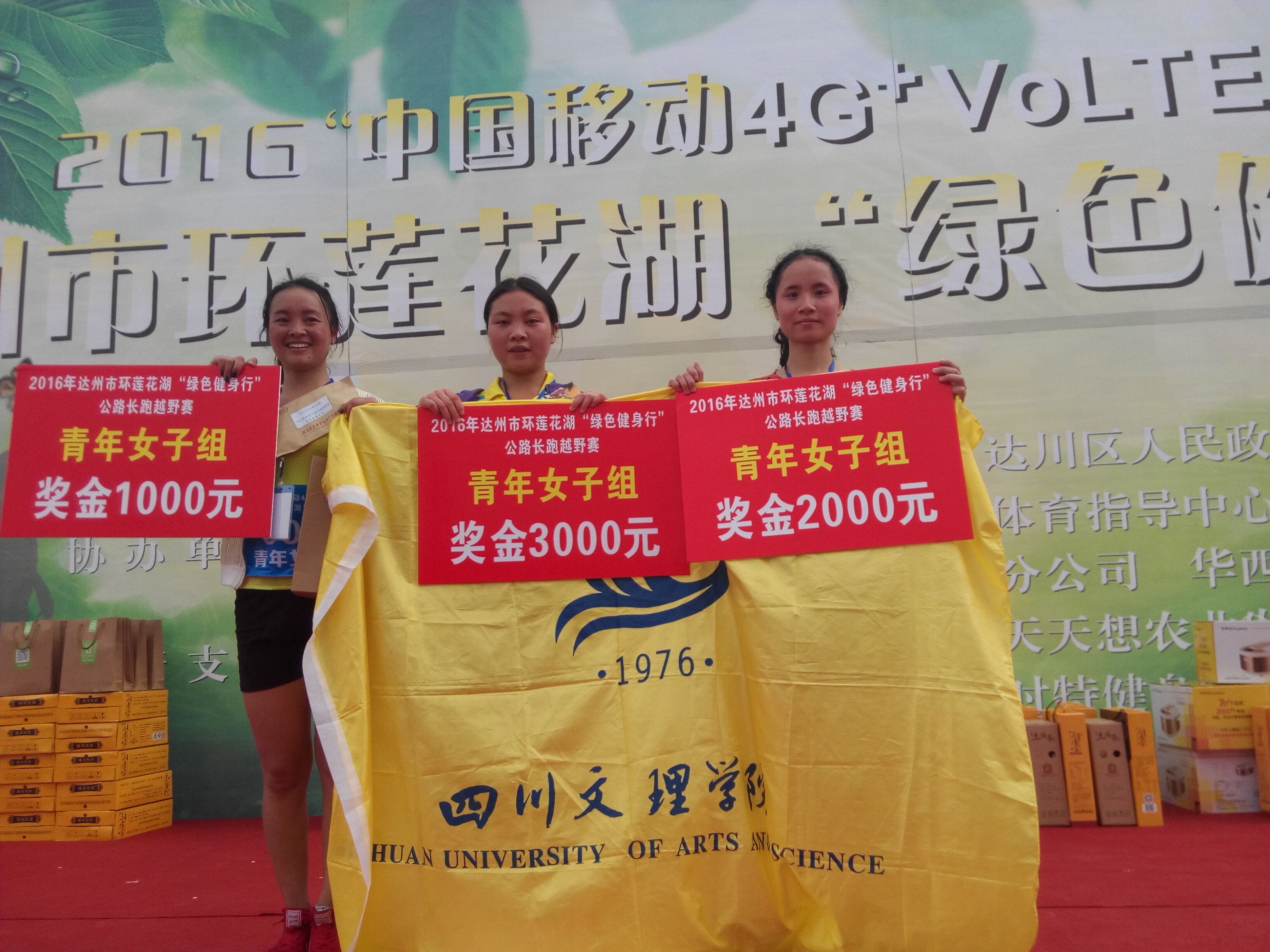 4月15日上午,2016达州市环莲花湖“绿色健身行”活动在莲花湖巴山大剧院广场隆重拉开帷幕,公司领导高度重视,组织了50名优秀选手报名参加了长跑越野项目的青年组比赛。2015级6班王菊、樊小霞、2014级8班鲁伍呷包揽了女子组前三甲;2013级8班李攀同学荣获男子组第三名。