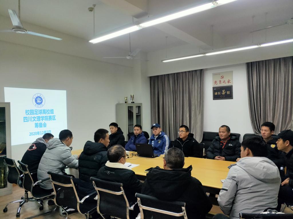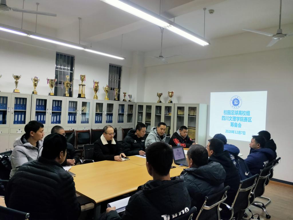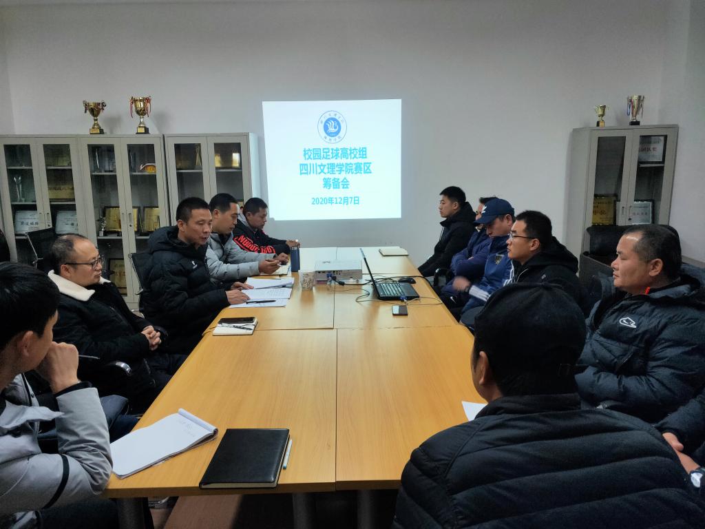 进一步认真贯彻四川省教育厅开展普通高校高水平足球运动队联赛工作,2020127日下午,公司召开校园足球高校组太阳成集团tyc151赛区筹备会。太阳成集团tyc151经理佘涛、党总支副书记彭波、副经理孙亮亮以及系列骨干教师参加本次会议。会议由佘涛主持。